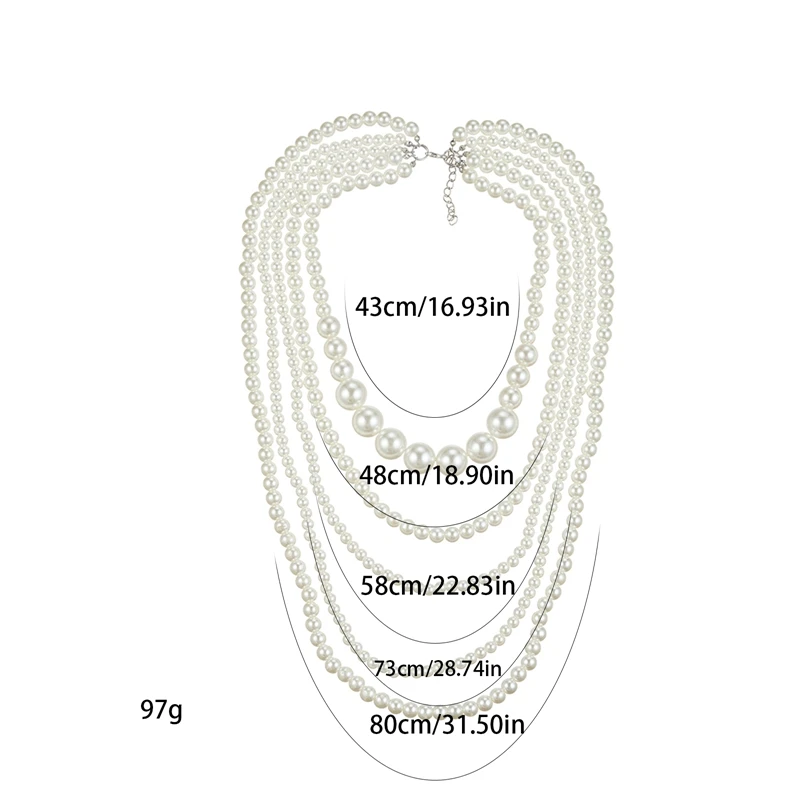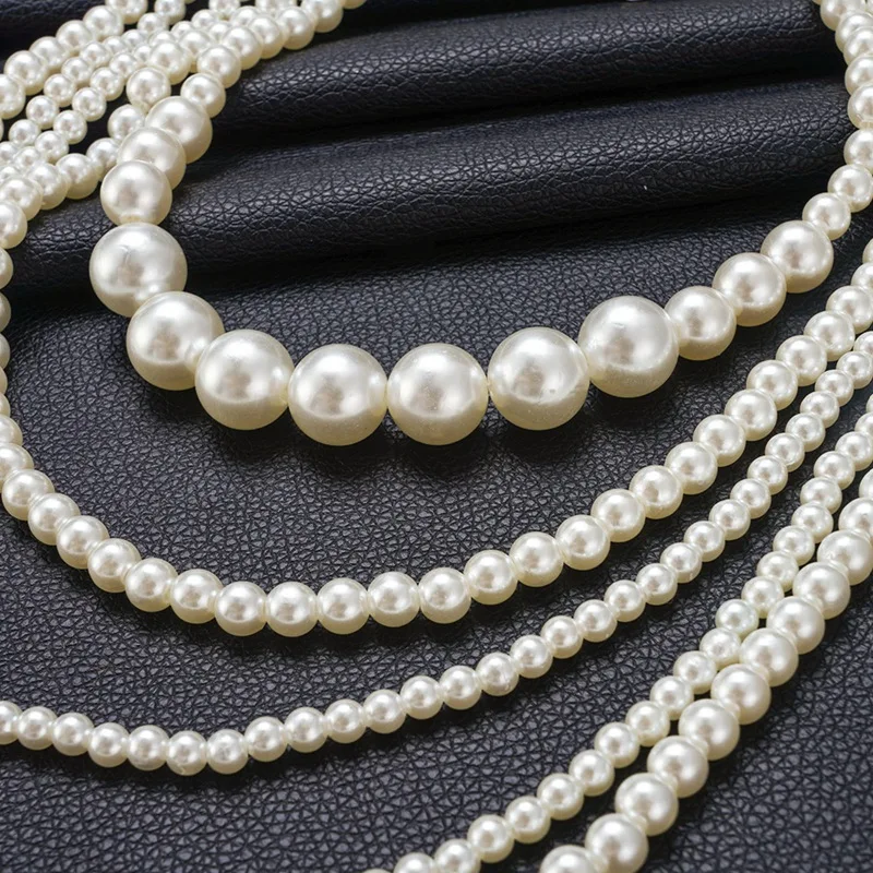 Vintage Imitation Pearl Choker Necklace Art Deco Flapper Accessories for Women White Multi-layer Imitation Pearl Necklaces